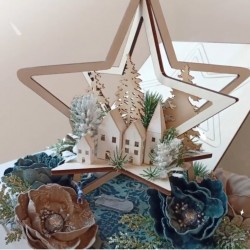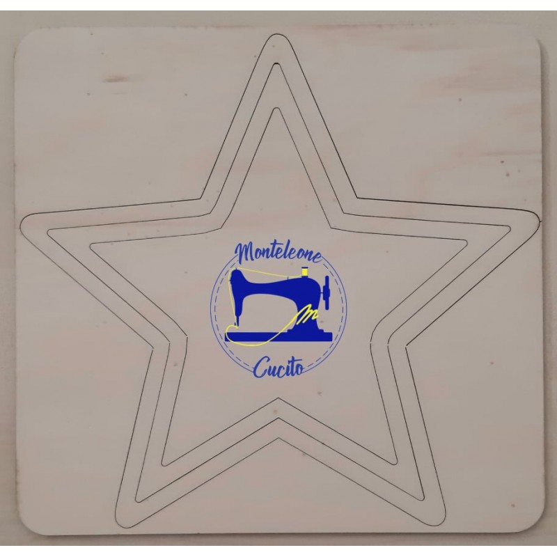 Stella saturno da 30 cm x 30 cm. Con due stelle cornice ed una stella piena, tutte con spessore da 6 mm.