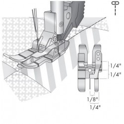 ll piedino per cucitura Stitch-in-Ditch è appositamente ideato per aiutarti ad ottenere una trapuntatura perfetta sul tuo quilt. La guida scorre agevolmente sulle cuciture che compongono il patchwork, per dei punti perfetti all‘interno della cucitura stessa.