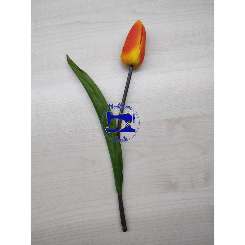 Tulipano in tessuto con stelo animato, ideale per composizioni a tema floreale, per arricchire crezioni o semplicemente per arredare ambienti domestici.