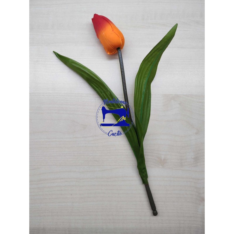 Tulipano in tessuto con stelo animato, ideale per composizioni a tema floreale, per arricchire crezioni o semplicemente per arredare ambienti domestici.