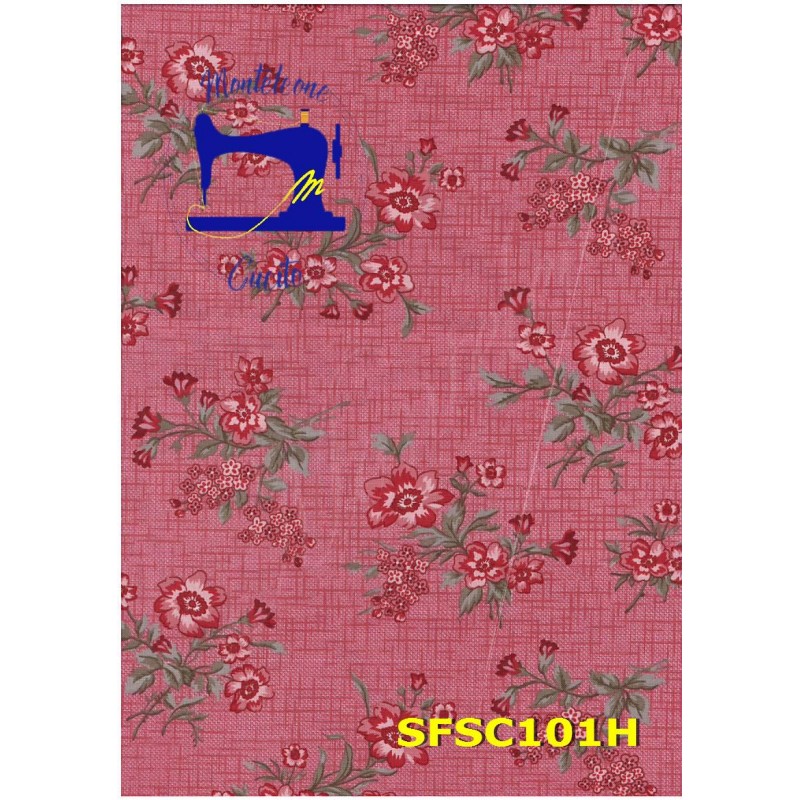 Tessuto Rosso a Fiori. 100% cotone.