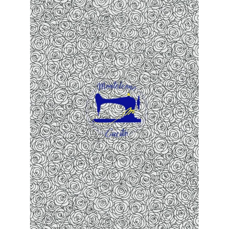 Tessuto grigio con fiocchi di neve oro. 100% cotone.