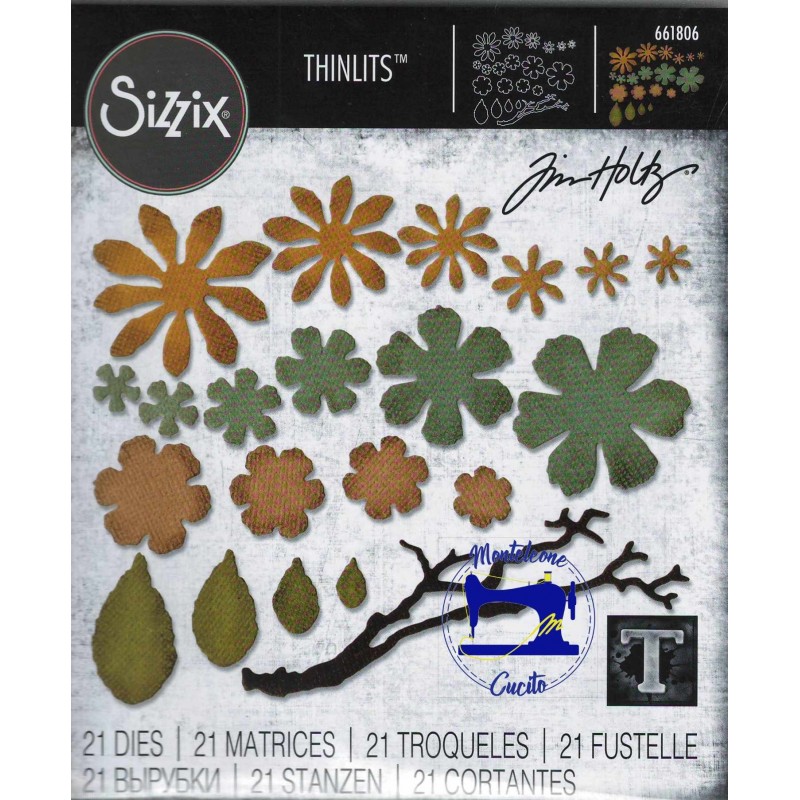 21 Fustelle Metalliche per ritagliare un rametto fiorito con foglie e fiori di diversa forma e dimensione