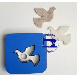 Questa fustella permette di ritagliare una mini Colomba. Taglia nettamente materiali spessi, tra cui cartoncini, tessuti, moosgumi, pellicole metalliche, pelle, carta, cartoncino e feltro da 3mm. Dimensione Colombina: cm 3 x 4 circa
