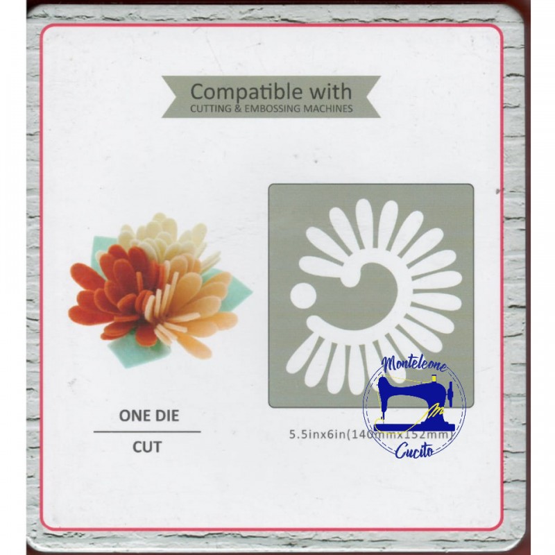 Questa fustella permette di ritagliare una margheritina. Taglia nettamente materiali spessi, tra cui cartoncini, tessuti, moosgumi, pellicole metalliche, pelle, carta, cartoncino e feltro da 3mm. Dimensione: circa cm 14 x 15,2
