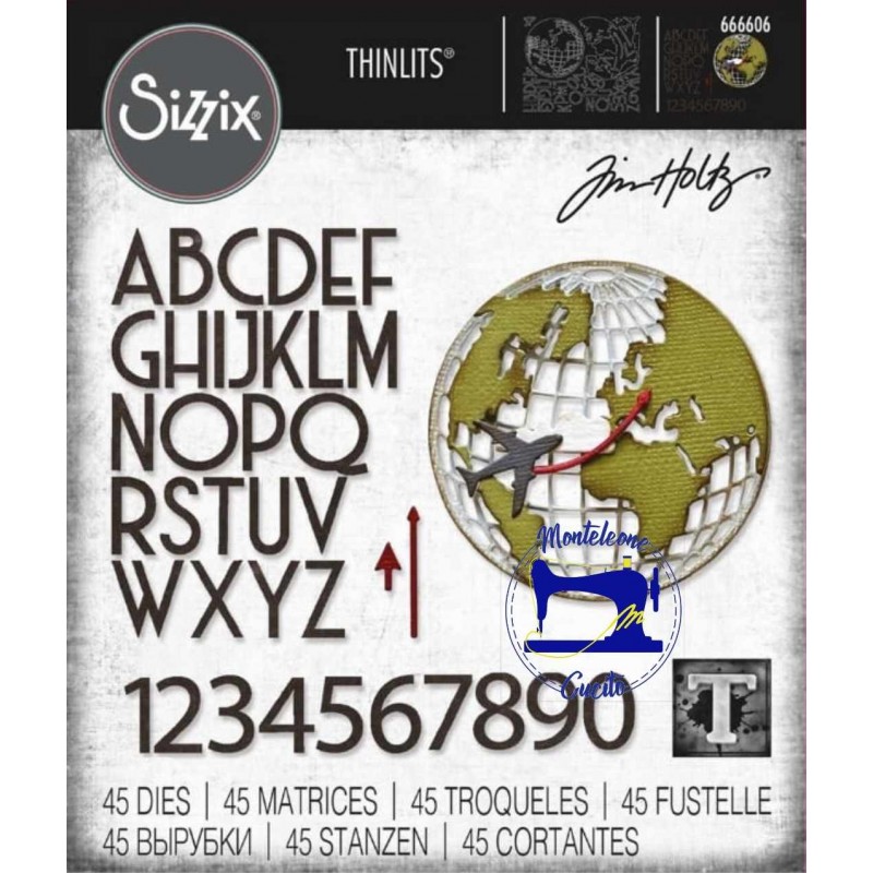 45 Fustelle metalliche per ritagliare un mappamondo con aeroplano, lettere e numeri, un'idea di Tim Holtz