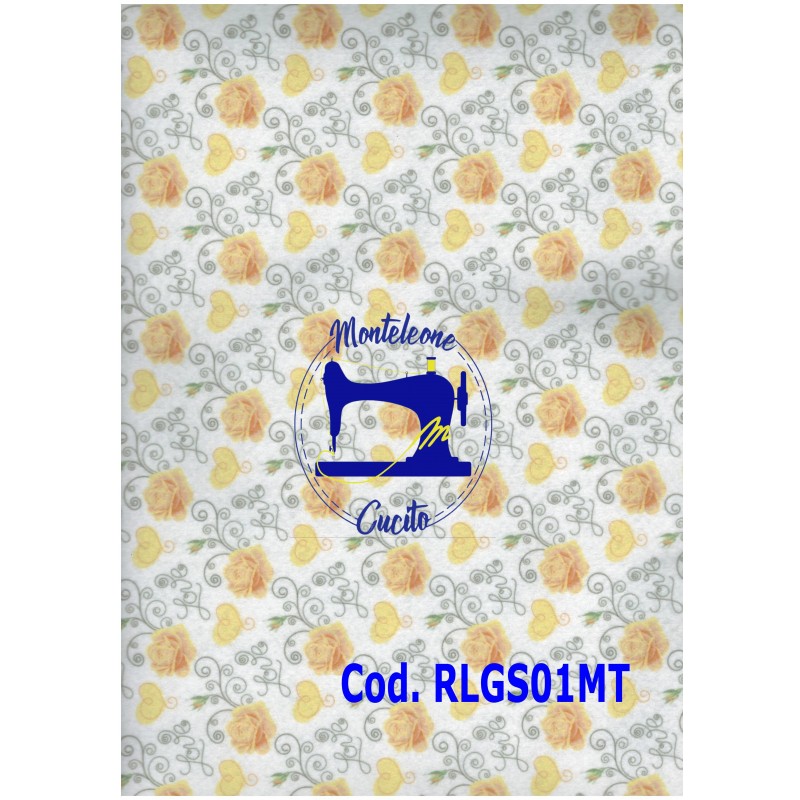 Pannolenci di poliestere con fiori stampati, disponibile in molte varianti di colore. L'articolo è adatto a tecniche come il bricolage e viene largamente utilizzato, sia da bambini che adulti, per realizzare lavoretti natalizi, pasquali, per la festa della mamma o del papà, san Valentino e decorazioni creative. È inoltre molto adatto per tagliare sagome di fiori, animali e forme varie, per produrre borse, portafogli, accessori fai-da-te e una serie infinita di decorazioni home-made. Spessore: 1mm - Misure: 30x40cm - Materiale: 100% poliestere