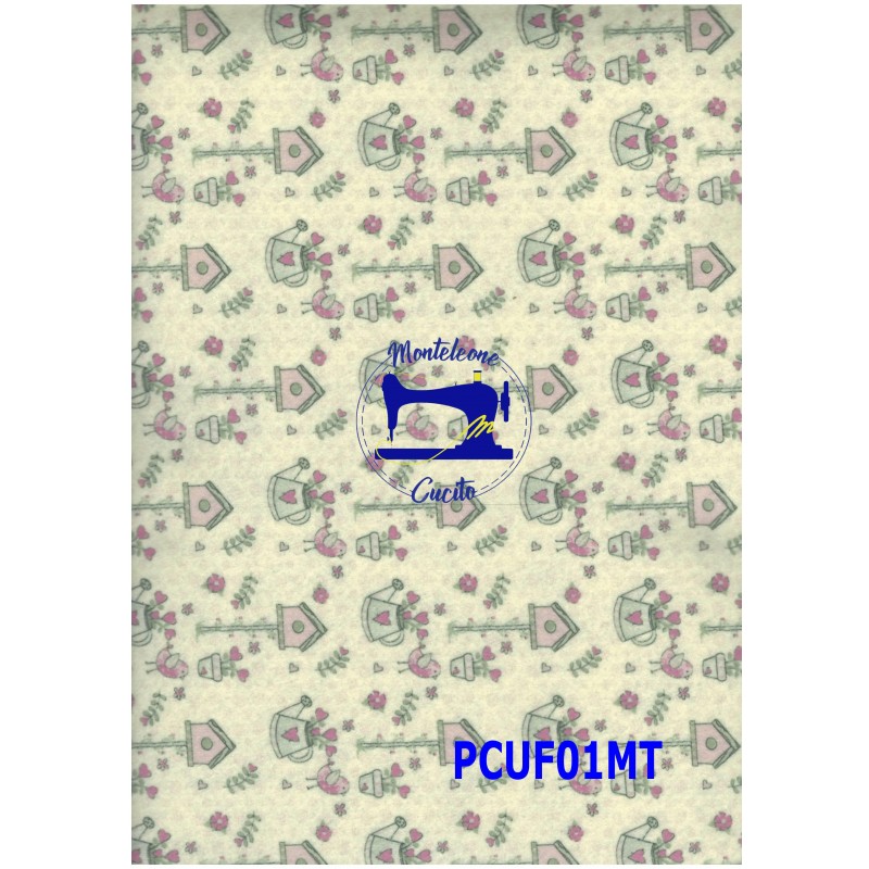 Pannolenci di poliestere con fiori stampati, disponibile in molte varianti di colore. L'articolo è adatto a tecniche come il bricolage e viene largamente utilizzato, sia da bambini che adulti, per realizzare lavoretti natalizi, pasquali, per la festa della mamma o del papà, san Valentino e decorazioni creative. È inoltre molto adatto per tagliare sagome di fiori, animali e forme varie, per produrre borse, portafogli, accessori fai-da-te e una serie infinita di decorazioni home-made. Spessore: 1mm - Misure: 30x40cm - Materiale: 100% poliestere