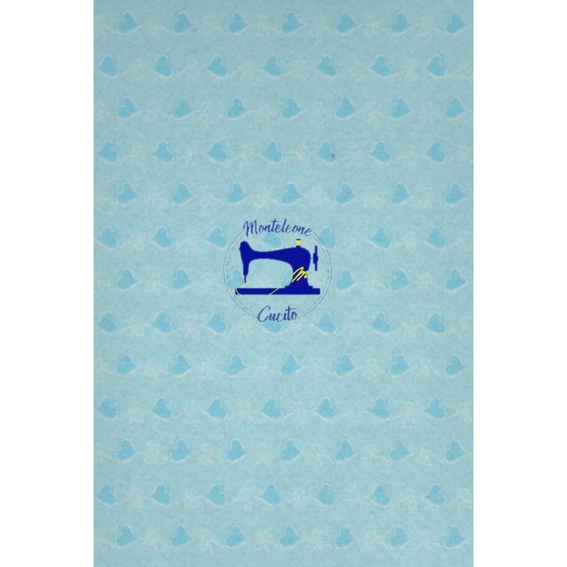 Feltro da 3 mm Riga di Cuori Celeste. Taglio da 50 cm x 40 cm circa