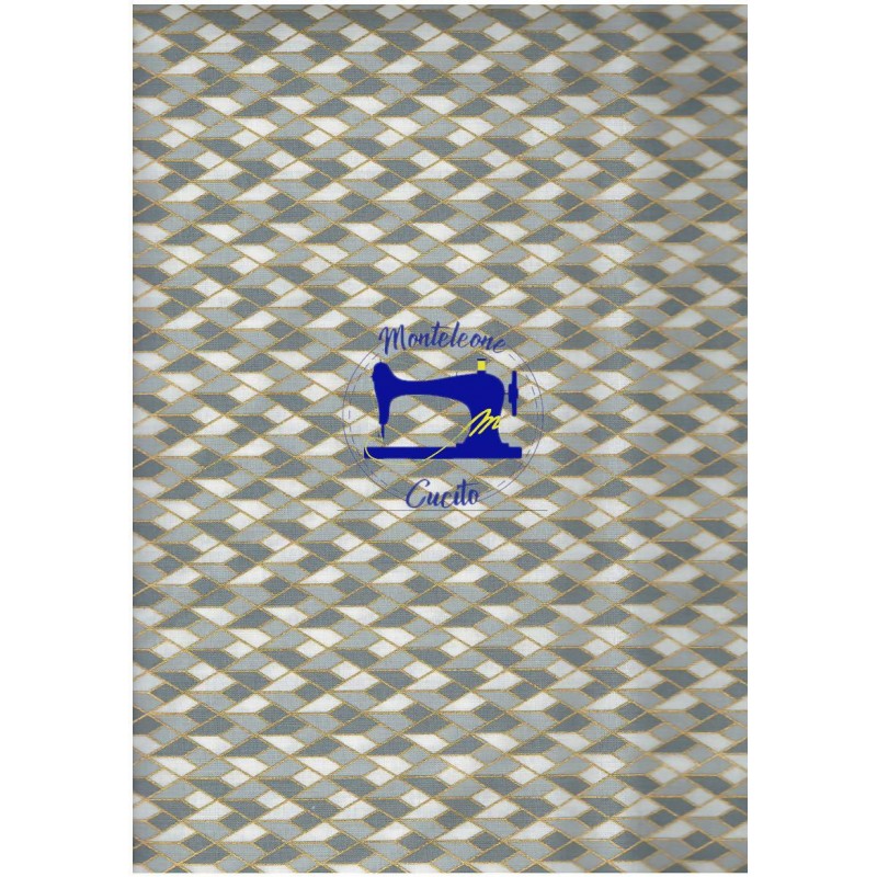 Fat quarter Tessuto Grigio e bianco con filo oro 100% cotone.
