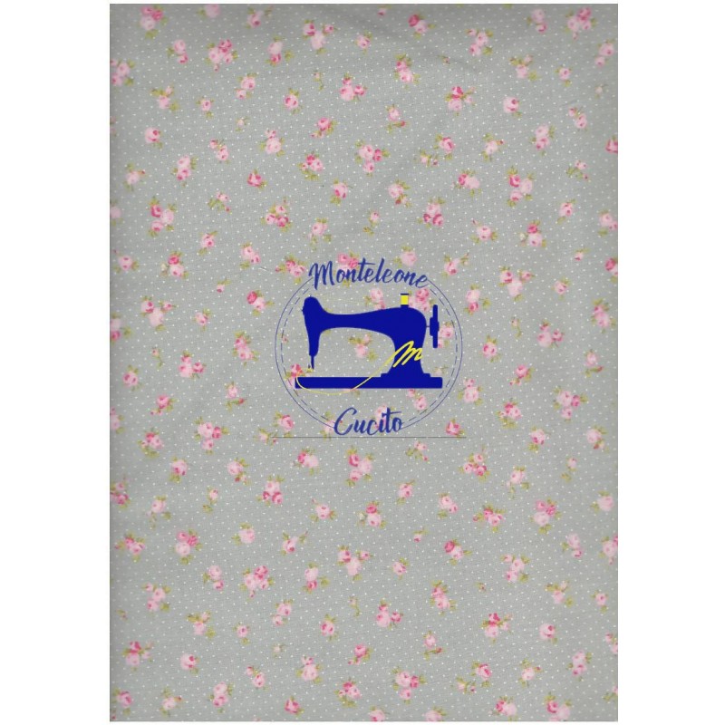 Tessuto grigio con roselline. Ideale per cucito creativo e bambole, i tessuti sono perfetti anche per patchwork e quilting.