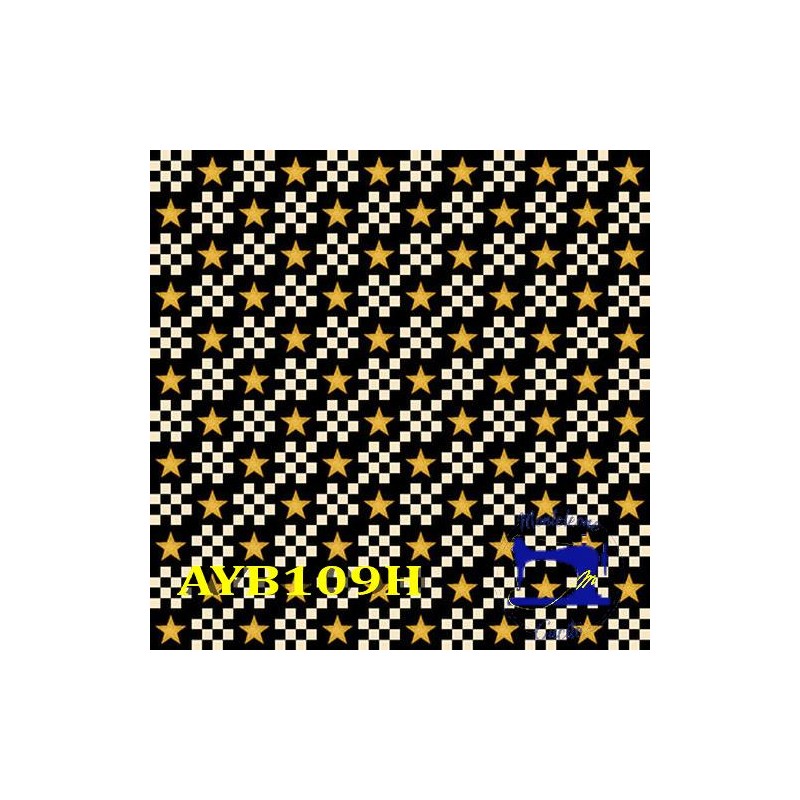 Your Blessings. Tessuto nero con stelline e quadratini. 100% cotone.