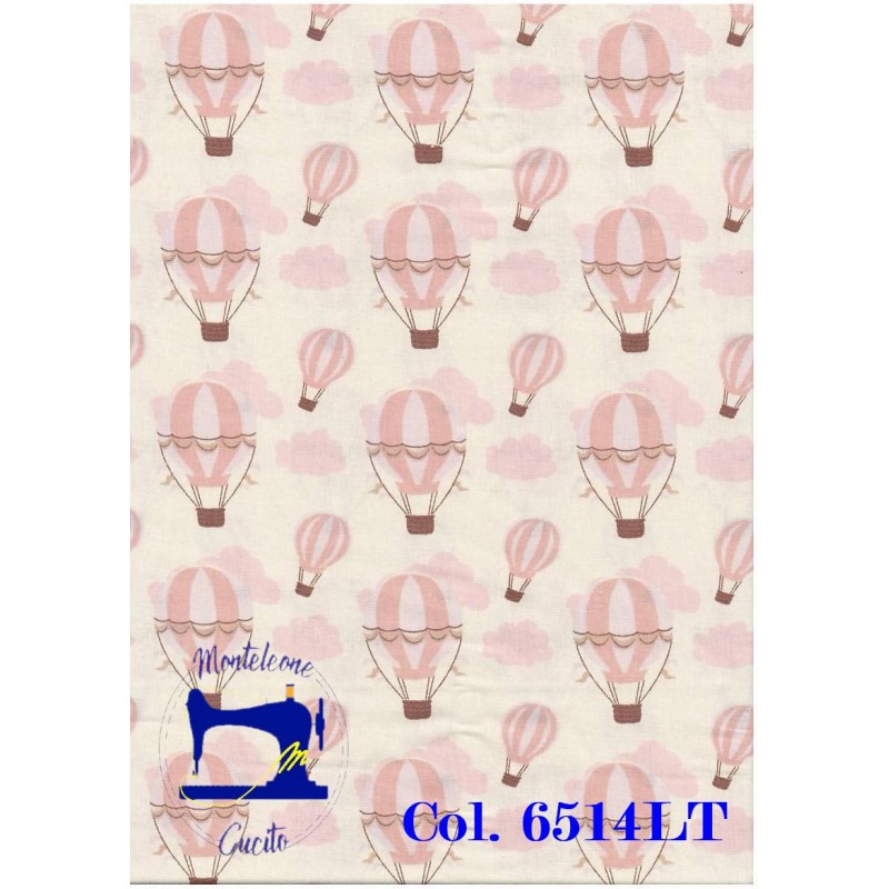 Anita Catita Baby tessuto a fantasia mongolfiera Rosa 100% cotone. Taglio da 45 x 50 cm