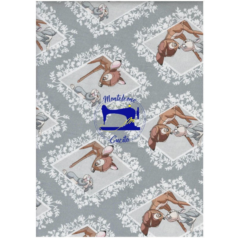 Tessuto Disney Bamby grigio 100% cotone. Taglio da 50 cm x 110 cm