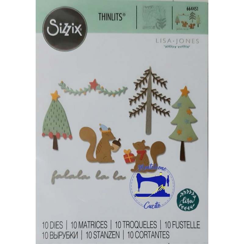 10 Fustelle Metalliche per ritagliare due simpatici scoiattoli immersi in un meraviglioso habitat natalizio . Taglia materiali sottili, tra cui cartoncini, tessuti, moosgummi, carta, gomma crepla fino a 2mm.