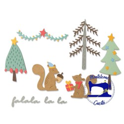 10 Fustelle Metalliche per ritagliare due simpatici scoiattoli immersi in un meraviglioso habitat natalizio