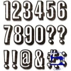 Questa fustella permette di ritagliare un Numeri e segni di Punteggiatura con caratteri in rilievo.