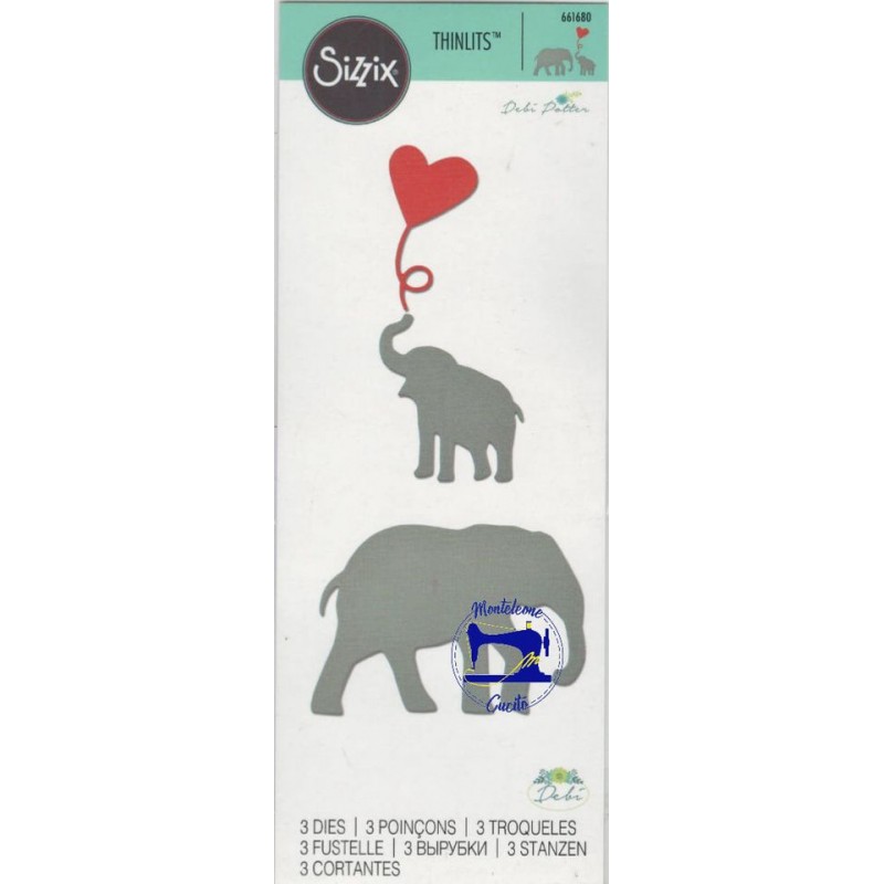 Questa fustella permette di ritagliare le sagome di due elefantini con palloncino cuore.