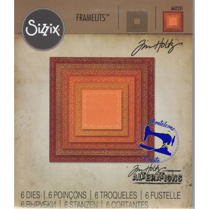 6 Fustelle Metalliche per ritagliare sagome di quadrati di diverse misure con puntini.
