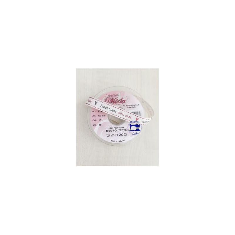 Nastro con scritta "hand made" dei "I Nastri di Mirta". Disponibile in diversi colori altezza 15 mm.