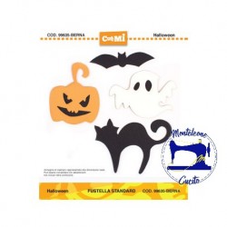 Dimensioni : Zucca mm 51 x 62 –Fantasma mm 70 x 49 – Pipistrello mm 67 x 16 – Gatto mm 79 x 56.