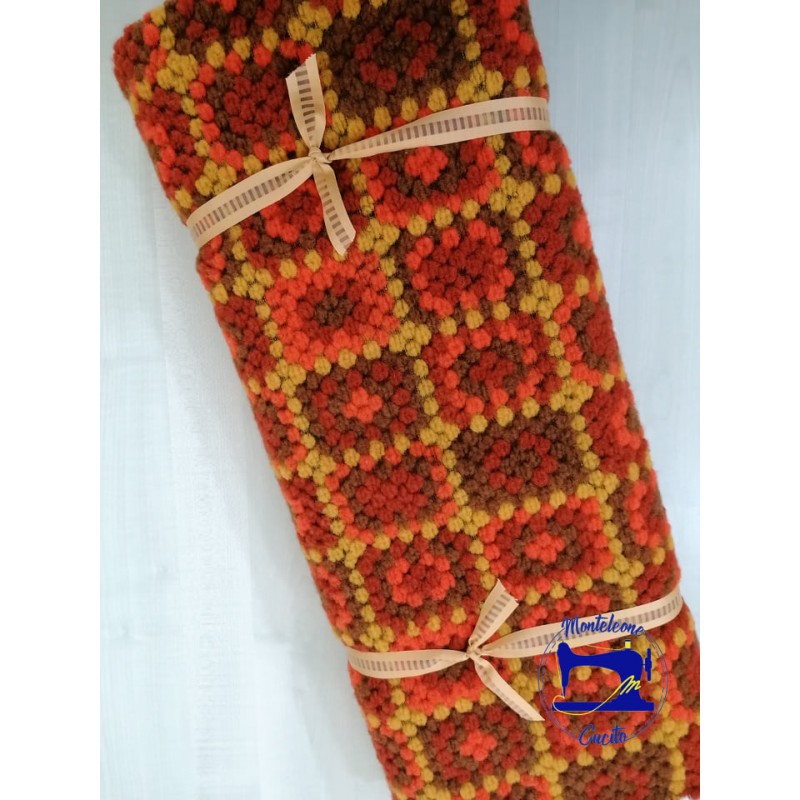 La Nonna di Mirta tess.quadro Arancio. tessuto in lana ideali per creazioni sartoriali tipo scialli, cappotti e tanto altro, oppure per realizzare borse ed oggetti tridimensionali.