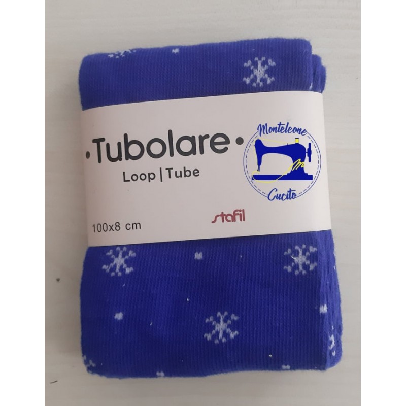 Tubolare blu con fiocchi di neve bianco, utile per rivestire sfere di politirolo e nella pupazzeria. Può essere cuciro ed incollato.