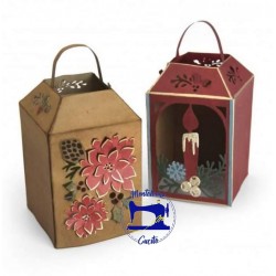 Questa fustella permette di ritagliare una lanterna decorata con temi natalizi, una stella di natale, una candela.