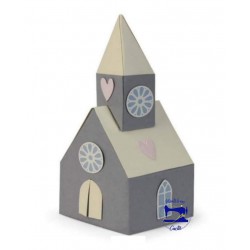 8 fustelle metalliche per ritagliare e realizzare la sagome di facciate, frontali e laterali di una chiesetta con campanile e orologio!