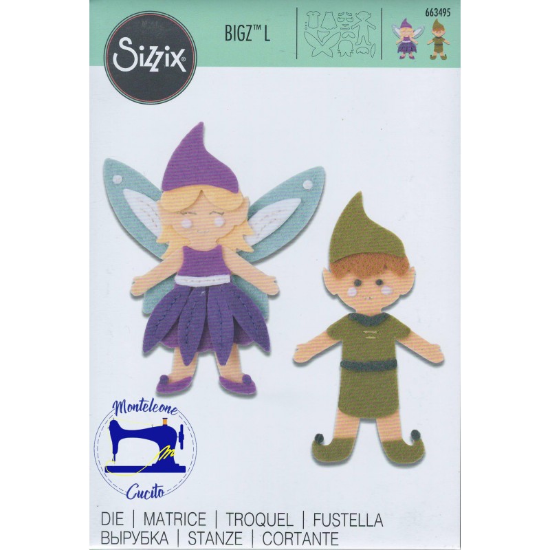 Questa fustella permette di ritagliare un elfo e una fatina. Taglia nettamente materiali spessi, tra cui cartoncini, tessuti, moosgumi, pellicole metalliche, pelle, carta, cartoncino e feltro da 3mm.