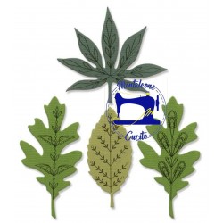 Fustella framelits per ritagliare carta, cartoncino, pergamena, sottili lamine di metallo ecc. Questo set comprende 3 fustelle framelits - 4 timbri per riprodurre foglie di sagome e venature differenti
