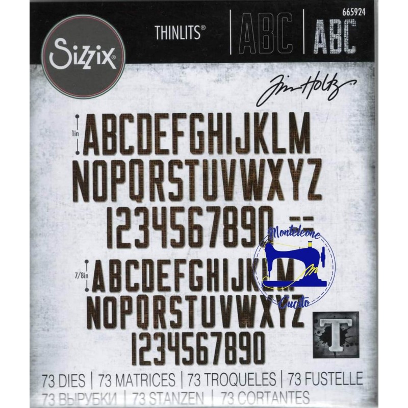 Questa fustella permette di ritagliare un alfabeto, numeri e segni di punteggiatura