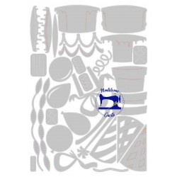 Ben 32 fustelle metalliche per ritagliare elementi e accessori dedicati al compleanno e al mondo delle feste in genere. un pacco regalo, una Torta, dei Festoni e dei palloncini. Taglia materiali sottili, tra cui cartoncini, tessuti, moosgummi, carta, gomma crepla fino a 2mm. Dimensioni : cm 1,59 x 12,07 - cm 4.45 x 0.32