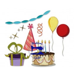 Ben 32 fustelle metalliche per ritagliare elementi e accessori dedicati al compleanno e al mondo delle feste in genere. un pacco regalo, una Torta, dei Festoni e dei palloncini