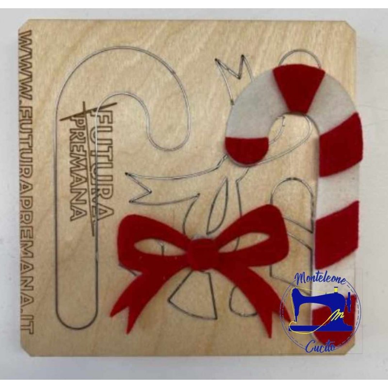 Questa fustella permette di ritagliare un bastocino Candycane con fiocco