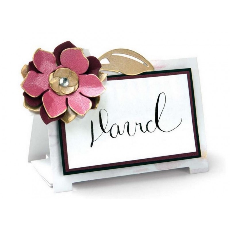 Questa fustella permette di ritagliare un segnaposto con temi floreali, una farfalla.