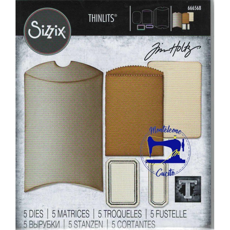 5 Fustelle metalliche per realizzare una scatolina a forma di cuscino con etichette