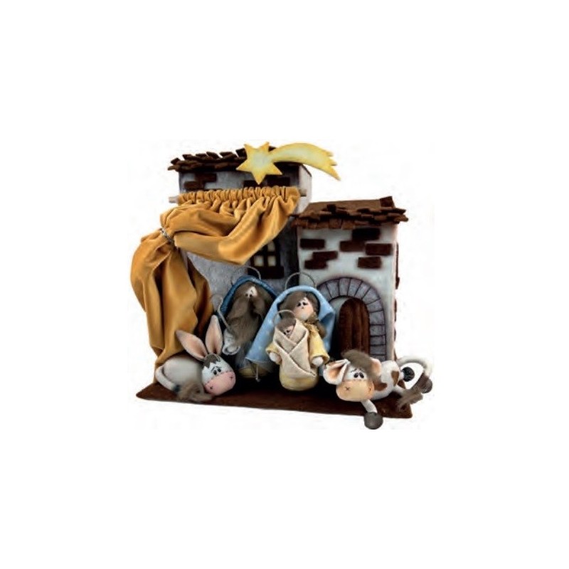 Kit presepe della linea renkalik, contenente la struttura e i materiali velluto, feltro modellabile per realizzare la splendida capanna, tutto dustellato, scheda con istruzioni per il montaggio, bastoni in legno.