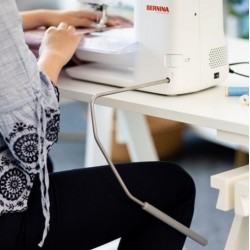 PICCOLA MA EFFICIENTE Con 16 cm a destra dell’ago, la macchina le offre ampio spazio per realizzare le tue idee, senza per questo risultare ingombrante. Il braccio libero consente di gestire i progetti tubolari, come le maniche o le gambe dei pantaloni, in modo particolarmente facile.