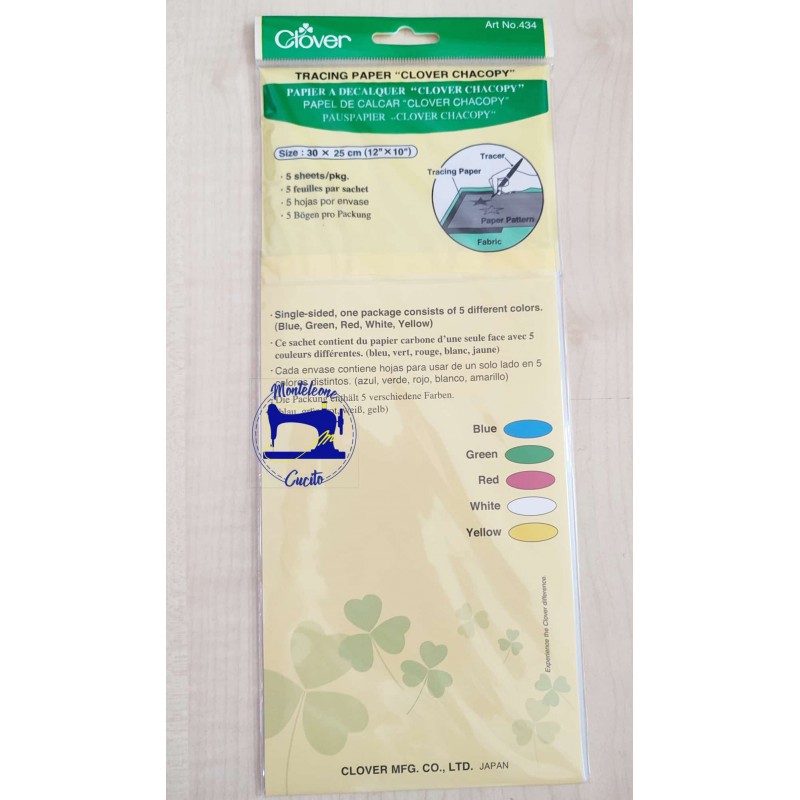 Carta copiativa della clover. La confezione presenta un foglio per colore blu, verde, rosso, bianco e giallo