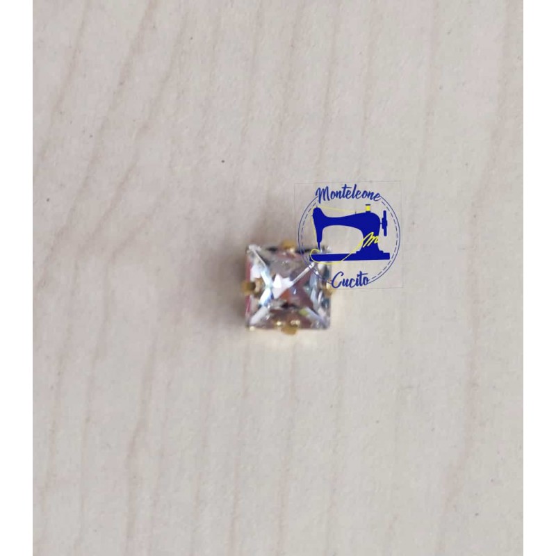Strass con montatura dorata quadrato da 10 mm, spendido per decorare diversi fiori in tessuto della linea de I Nastri di Mirta