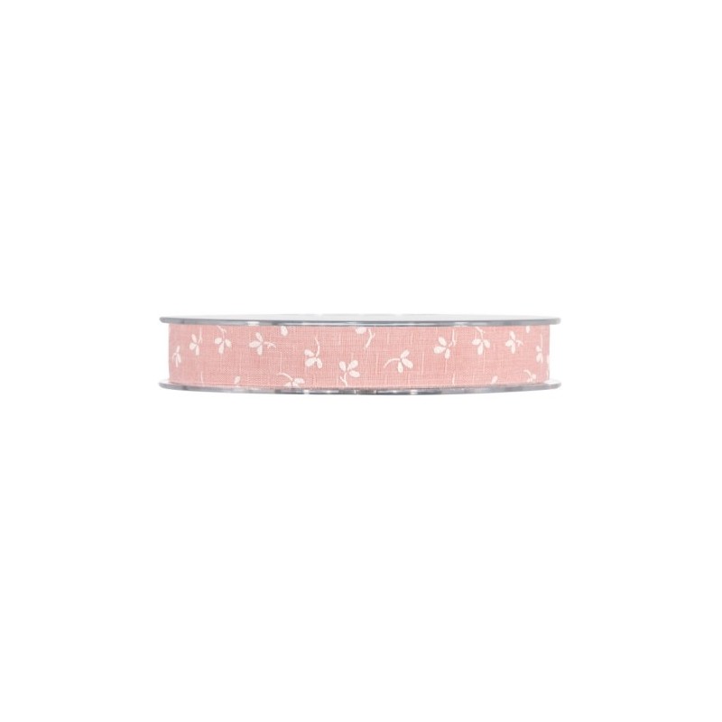Nastro floreale color rosa. Nastrino da 15 mm con fiorellini bianchi
