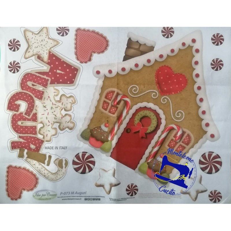 Pannello in pannolenci stampato per realizzare una scritta Auguri ed una Casetta di Pan di Zenzero. Casetta alta 70cm.