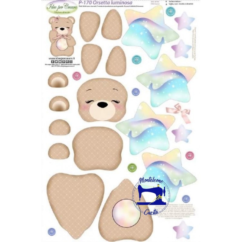 Pannello in Pannolenci Stampato per ritagliare e realizzare una simpatica orsetta con la pancia che si illumina utilizzando la praticissima Lampada "One Touch" con luci di diverse tonalità ACC-006