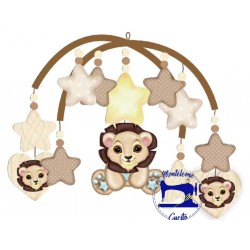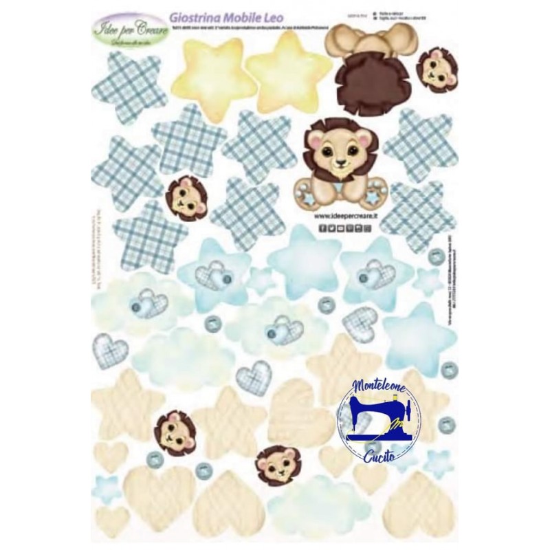 Pannello in Pannolenci Stampato per ritagliare e realizzare una Giostrina da ancorare alla culla a alla carrozzina del bambino Con Leoncini, Cuori e Stelline