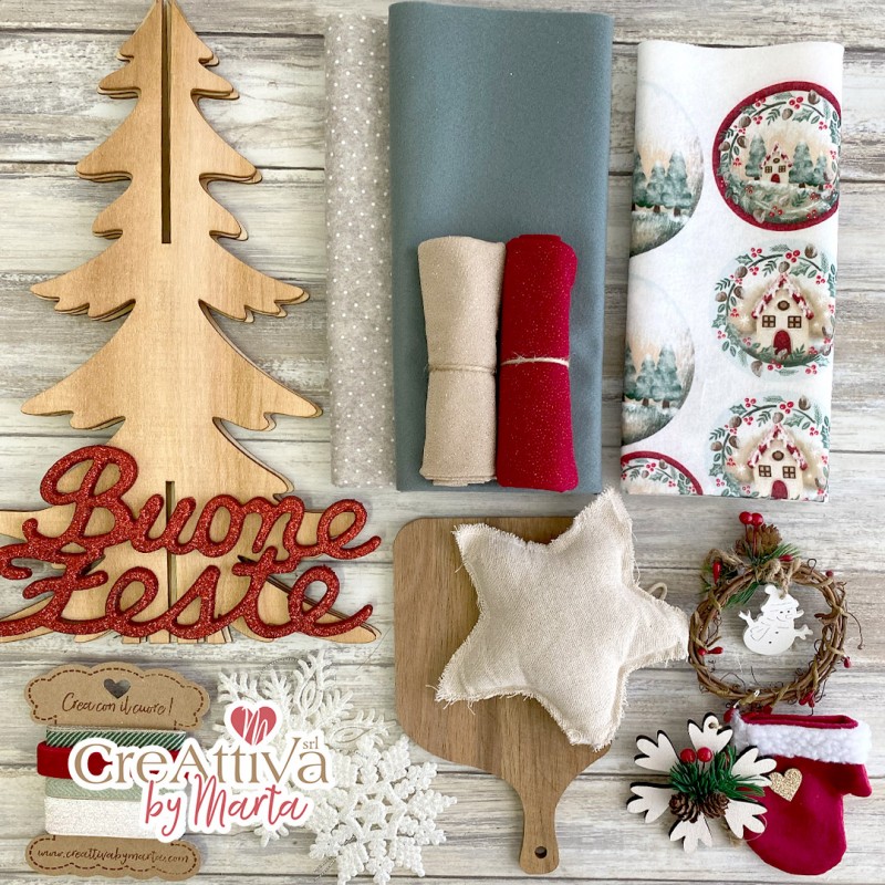 Kit di materiali per realizzare meravigliose sfere natalizie su di un albero 3d in legno.
