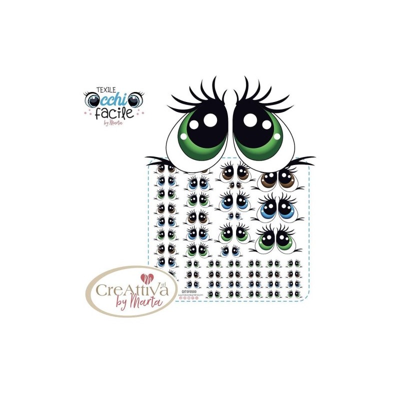 Pannello in pannolenci morbidissimo stampato con con simpaticissimi occhietti in tre colorazioni, verde, celeste e marrone, tutti in diverse misure  3/2/1,6/1,3/1  cm.