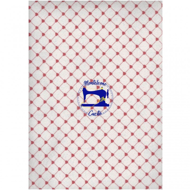 Pannolenci stampato rosso con rombi e cuori. L'articolo è adatto a tecniche come il bricolage e viene largamente utilizzato, sia da bambini che adulti, per realizzare lavoretti natalizi, pasquali, per la festa della mamma o del papà, san Valentino e decorazioni creative. È inoltre molto adatto per tagliare sagome di fiori, animali e forme varie, per produrre borse, portafogli, accessori fai-da-te e una serie infinita di decorazioni home-