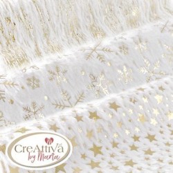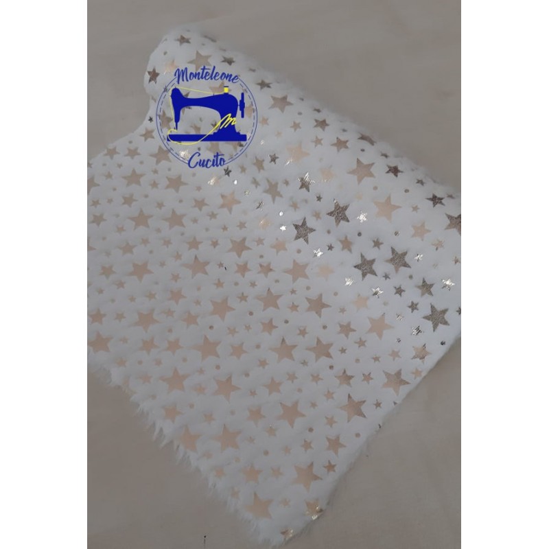 Pelliccia sintetica bianca con stelle oro.