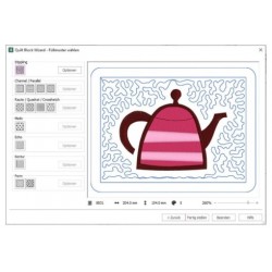 Non c'è niente di più facile di così. Il programma riempie un'area definita con un riempimento a blocchi desiderato e la macchina da ricamo lo ricama in modo indipendente.
